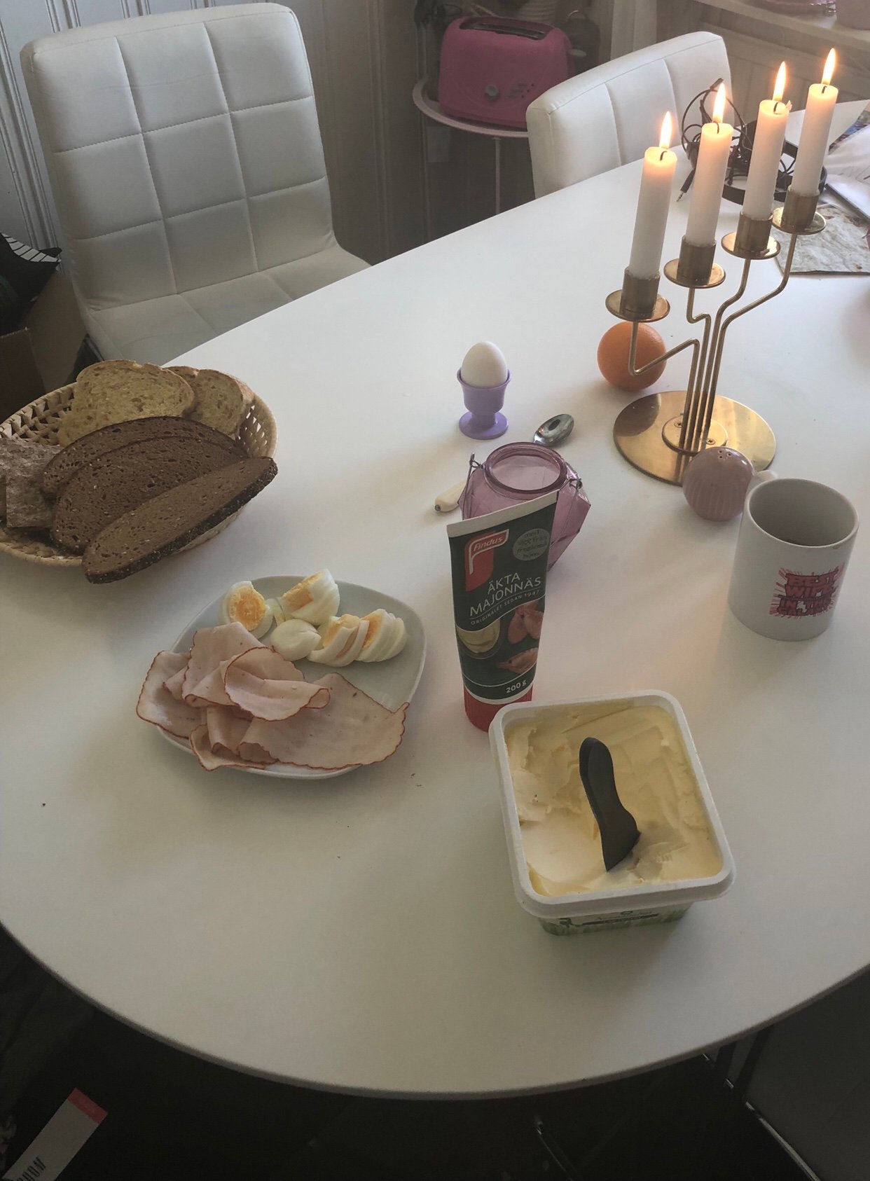 Men det kommer han inte undan! Är vi lediga tillsammans allihopa så äts frukosten tillsammans oavsett hur lång tid det tar !