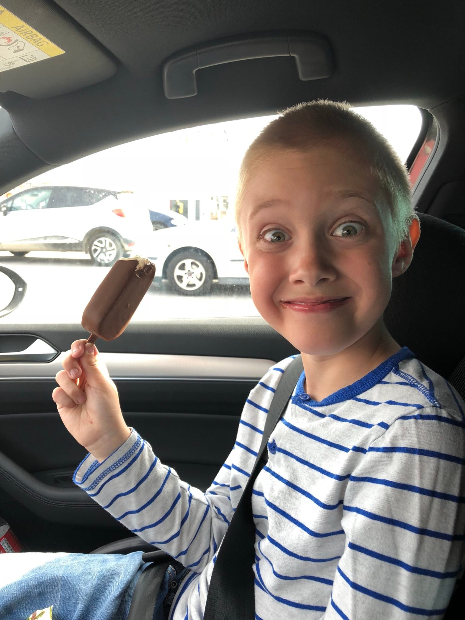 Lukas var nöjd att vi äntligen var färdiga och såg med spänning fram emot sin efterlängtade glass. Så vi svängde in på Ica och plockade upp det vi såg på vägen och som vi var sugna på.