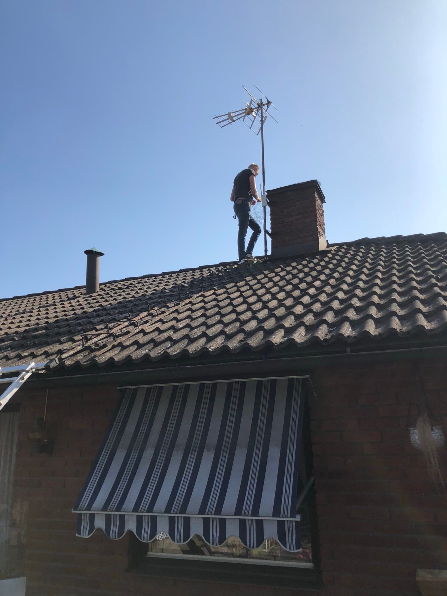 Den ena inkräktaren ansåg sig ha en genialisk plan i att bygga bo i vår skorsten ? jag lyckades tyvärr inte fånga den boven på bild men fick dock med min man på bild när han avbröt intrånget och stängde igen skorstenen igen.