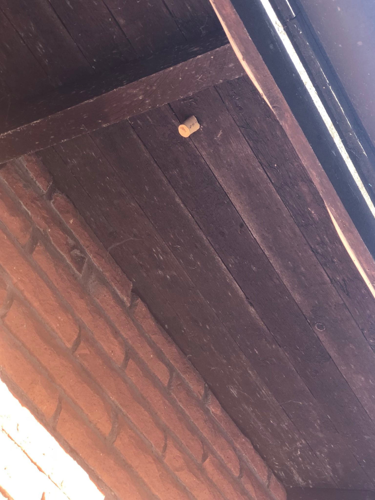 Nästa kandidat var en randig filur med en tagg man helst inte vill smaka på! Han eller hon ansåg att vårt undertak var ett toppen ställe att bygga bo på ! Vi var inte lika sugna på det så vi slog ned även det intrångsförsöket med hjälp av vinkorken från det goda rosé vinet vi avnjöt kvällen före!