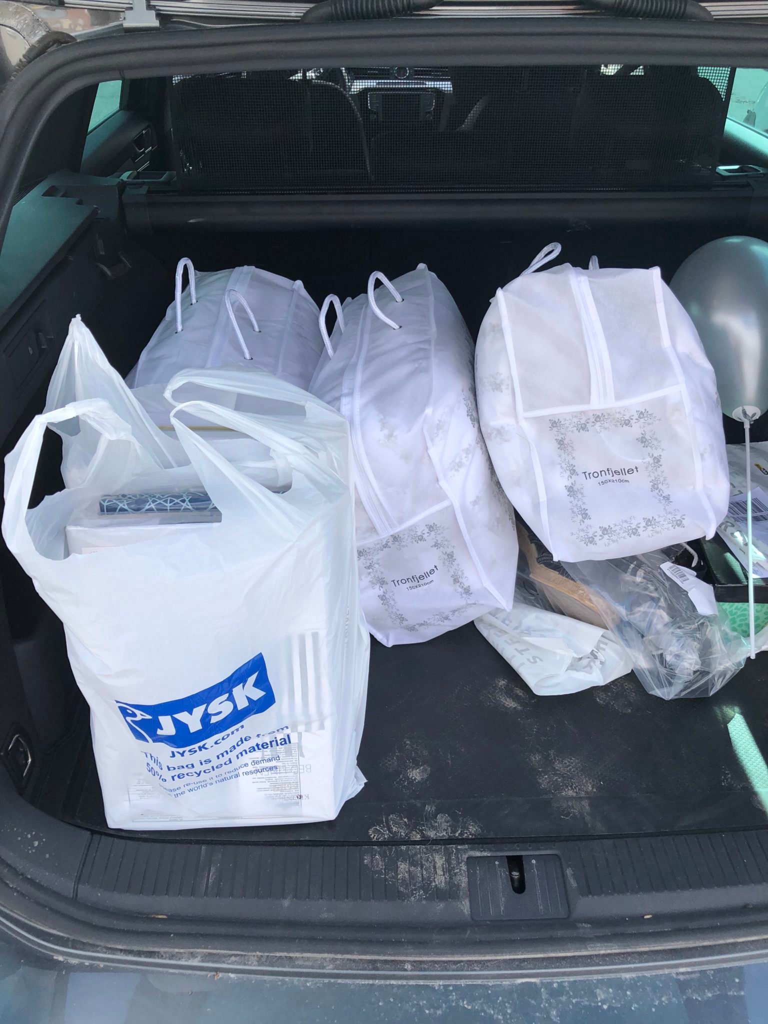 Så idag gjorde vi en lättare utflykt. Vi har klurat en del på lakan och täcken och liknande till huset. Ska vi ta med det? Eller köpa där? Jag hittade en rolig grej på nätet för ett par dagar sen och då började en plan ta form! Vakuumpåsar! Sagt och gjort jag beställde några och tänkte att det nog kanske ändå inte fungerar att göra ett fluffigt täcke helt platt och på det sättet kunna få plats med mer än ett täcke i resväskan.