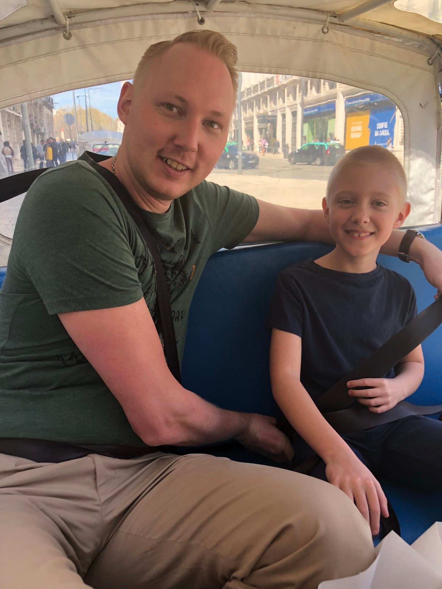 Ja ni förstår vilket håll det här barkar åt! Sonen var överförtjust i idén att ta en tuctuc hem, och med den tröttnad man kände i benen så var det bara att ge med sig! Så tuktuk blev det och det var helt klart en upplevelse! Man pendlade mellan att hålla koll på alla kassar och barn så att ingetdera av dom skulle studsa ut, till att helst inte titta rakt ut med risk för att då titta rakt ner i någons mattallrik eftersom dessa fordon tar sig fram precis överallt ! Inkluderat väldigt hoppiga gator och väldigt nära uteserveringar. Men nu har vi även provat det ?