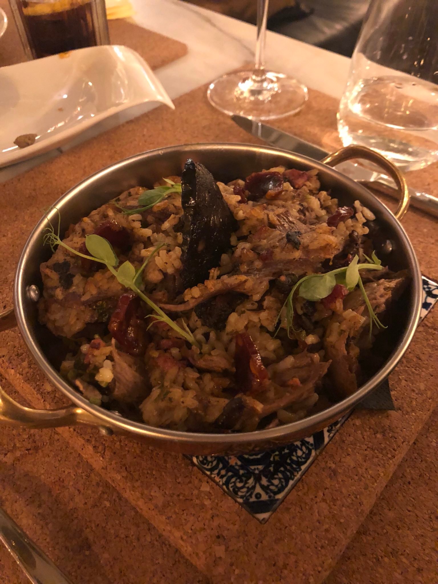 Själv valde jag anka med ris. Väldigt gott med någon typ av salamichips i. Vällagat och väldigt mättande.