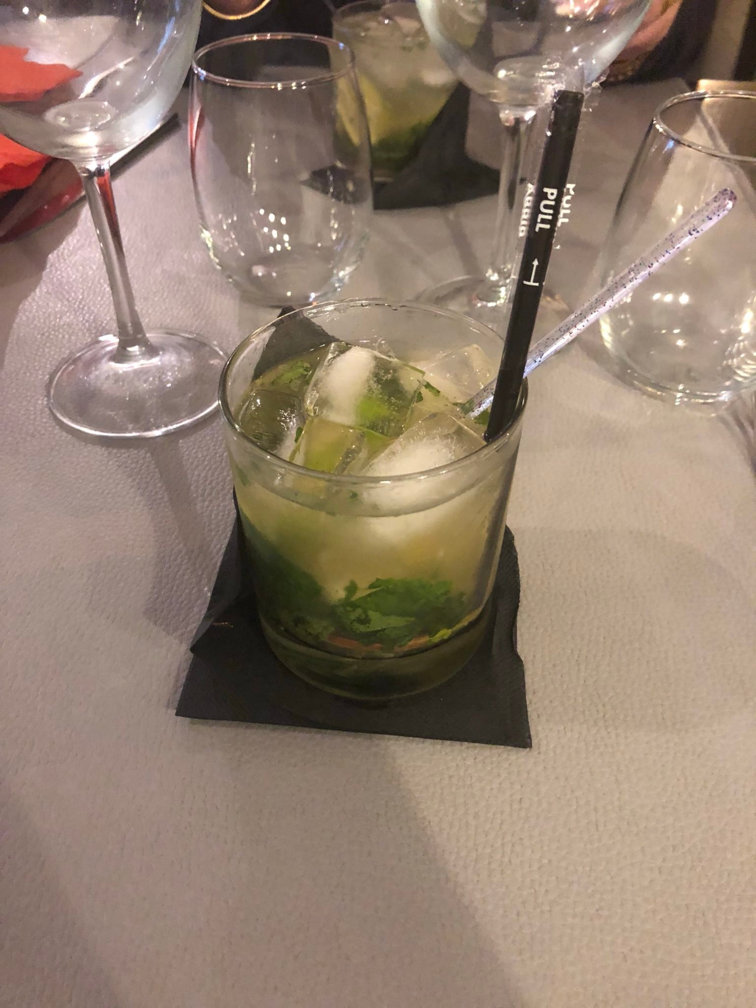 Det blev någon typ av bärkaka med maräng. Såg väldigt fin ut och dom två gottegrisarna som delade på den såg nöjda ut. Jag och Fredrik tog varsin mojito och den var makalöst god.
