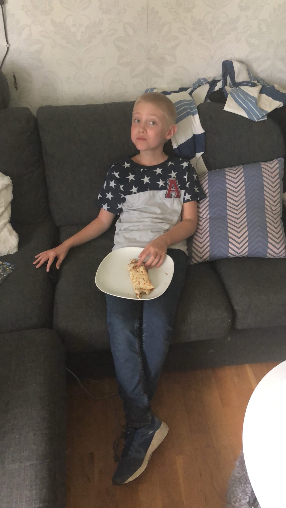 I morgon är det utflykt för Lukas i skolan, och önskemålet för matsäcken var hemgjorda pannkakor så mamman spenderade förmiddagen med att steka pannkakor och tillräckligt många så det räckte till både mellanmål i eftermiddags och frukost till pappan i morgon ?