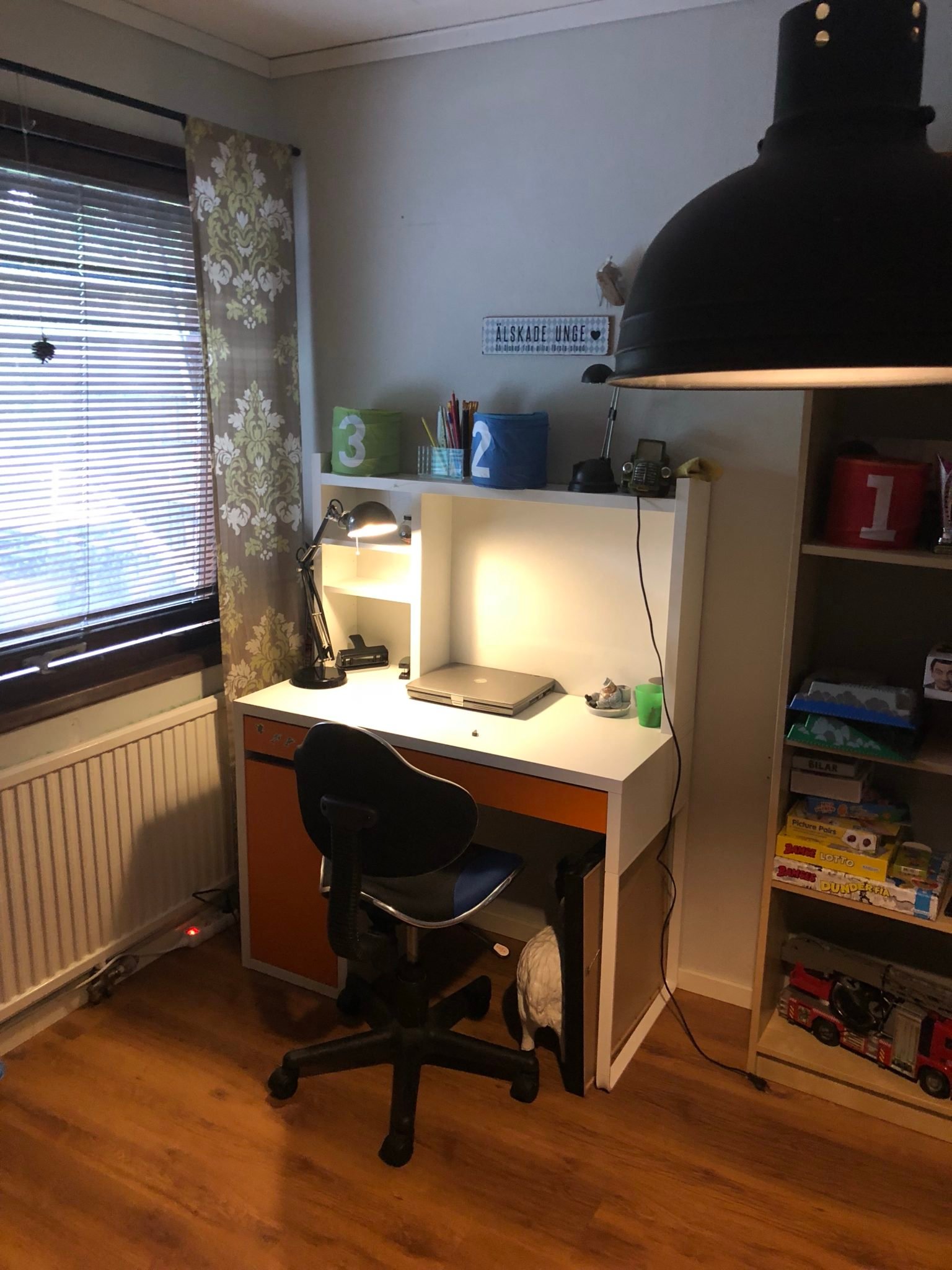 Idag färdigställdes juniors rum med egen byrå och tv:n är igång ? glad kille som är nöjd med sitt nya rum