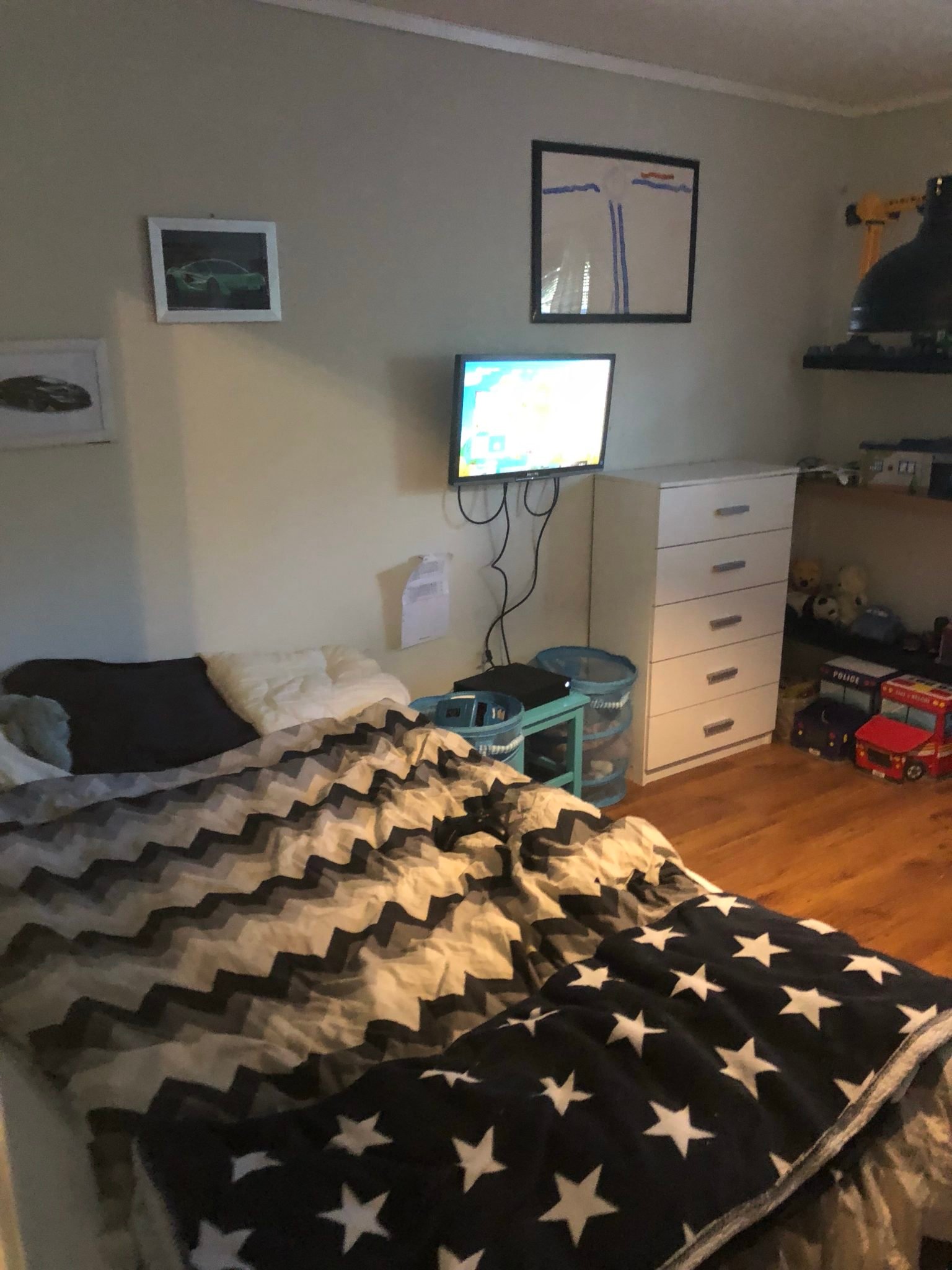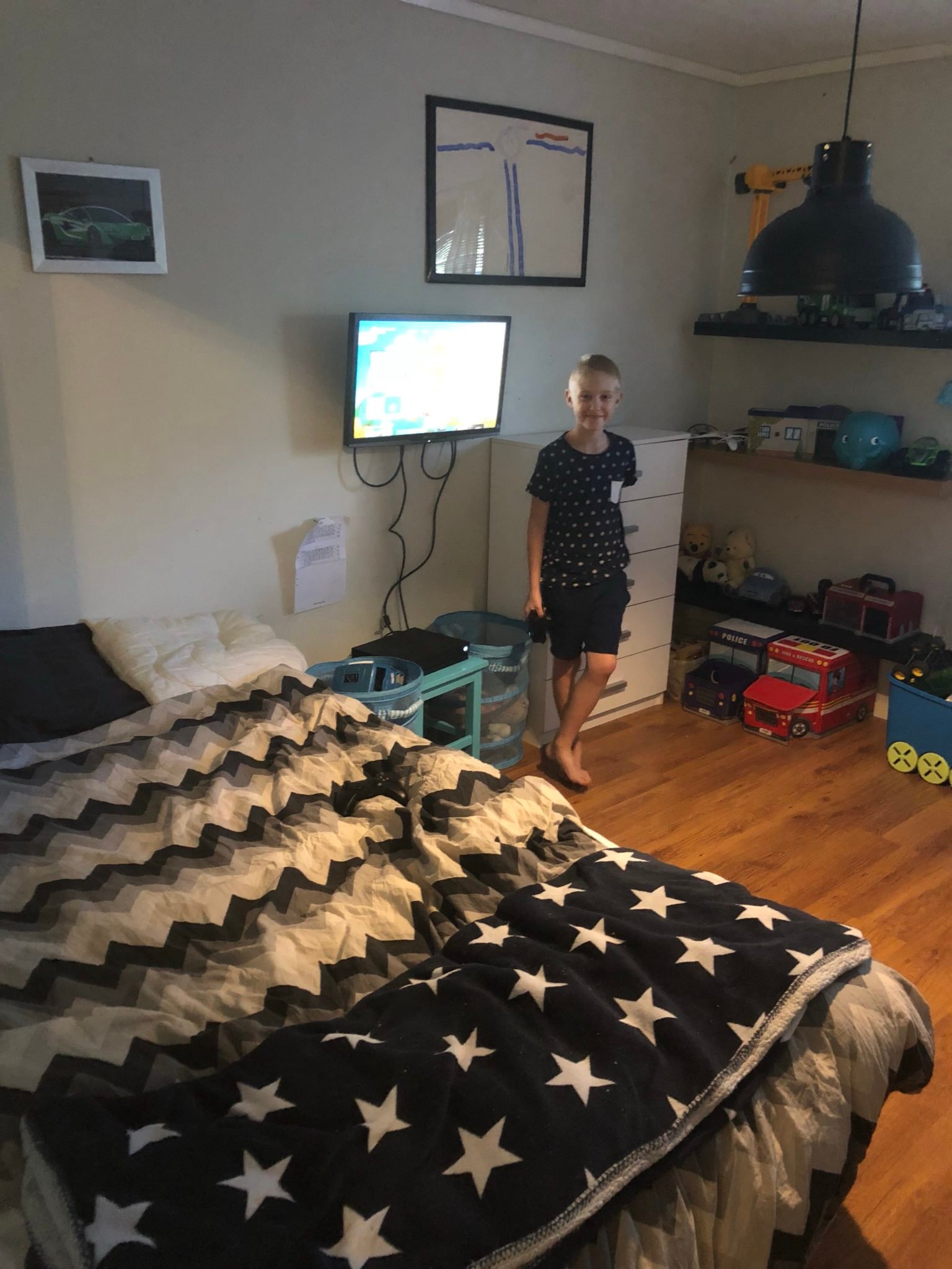 Idag var det Lukas rum som verkligen behövde uppdateras till ett rum mera passande hans ålder. Det tog verkligen emot i morse när jag började. Jag kunde inte se att jag skulle kunna reda ut all röra en åttaåring ställt till med efter ett par dagars lek med kompisar ?