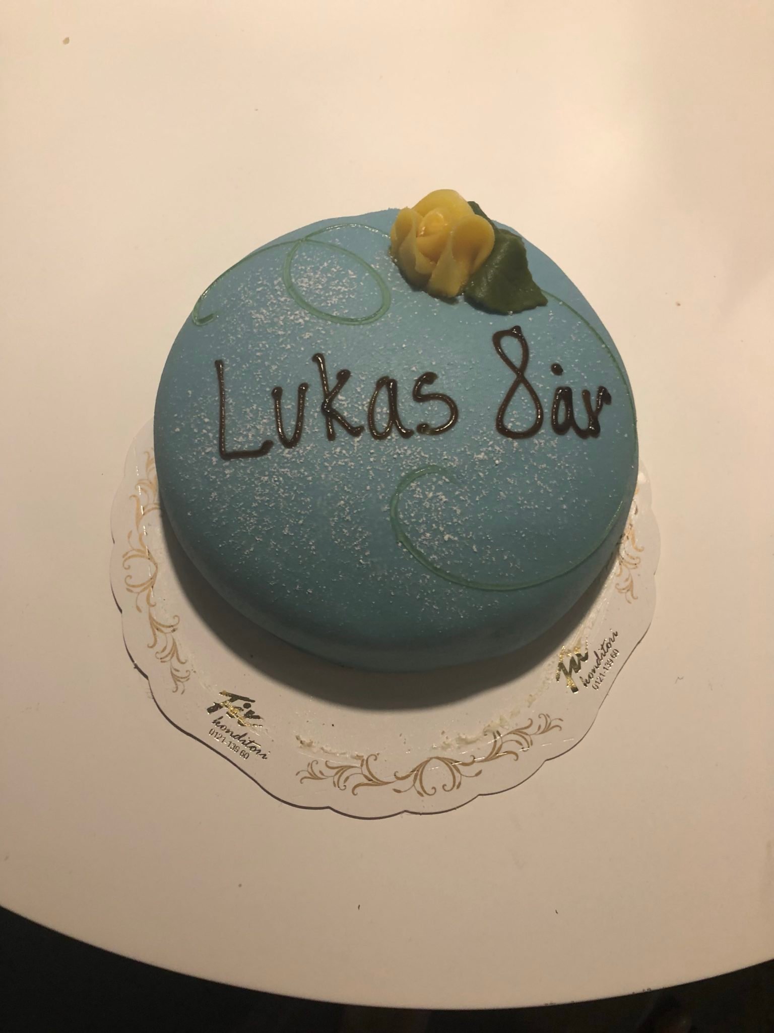 Igår var det dags att hämta den special beställda tårtan. Han blev verkligen glad för sin alldeles egna tårta.