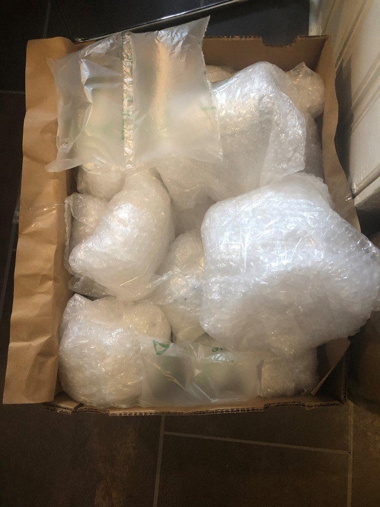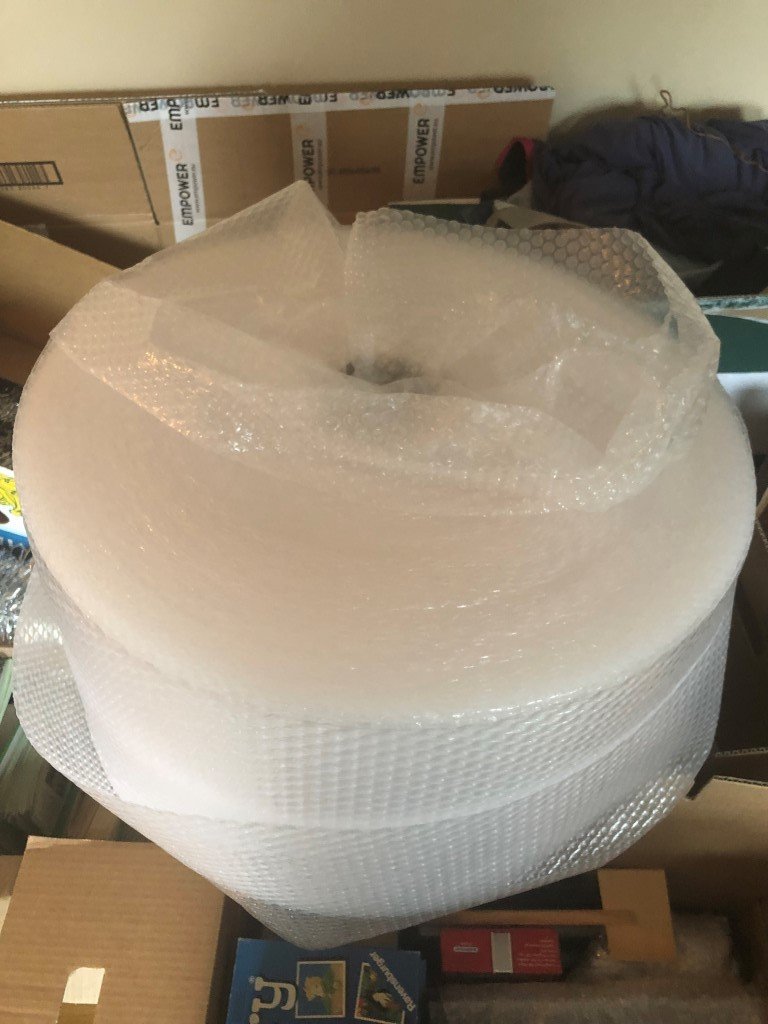 Den absolut tråkigaste uppgiften just nu står denna kompis för ? bubbelplastning! Inte roligt ! men eftersom vi har en hel del porslin som ska med oss så finns det ingen utväg ( Vem kom på att en servis måste vara typ hundra delar ? ??) vi tar lite åt gången, då den här sysslan lätt tröttar ut en ganska snabbt.