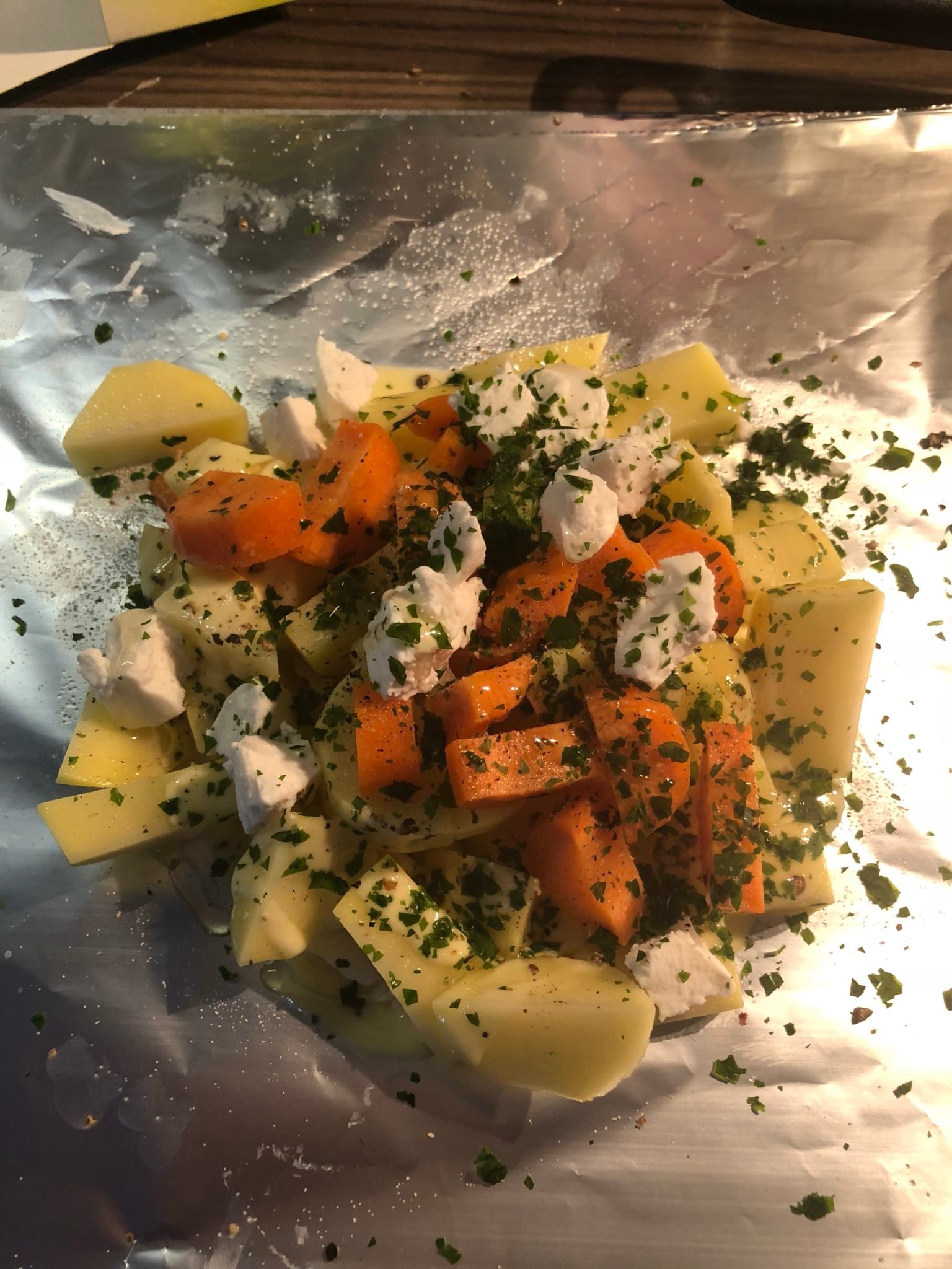 Igår blev det grillade potatispaket med morot,chèvre, persilja och honung
