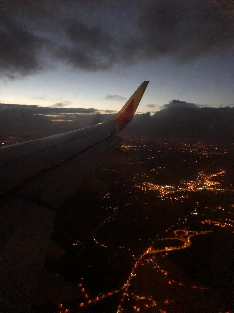Tyvärr hade det hunnit bli mörkt när vi landade men det var en kanon fin inflygning med alla ljusen.
