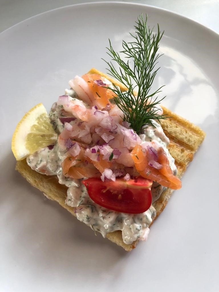 Men vissa smaker saknar vi från Sverige så häromdagen så blev det rökt laxröra med räkor på rostat olivbröd. Den mottogs med glädje och till och med junior som avskyr allt vad räkor heter klämde i sig en ?